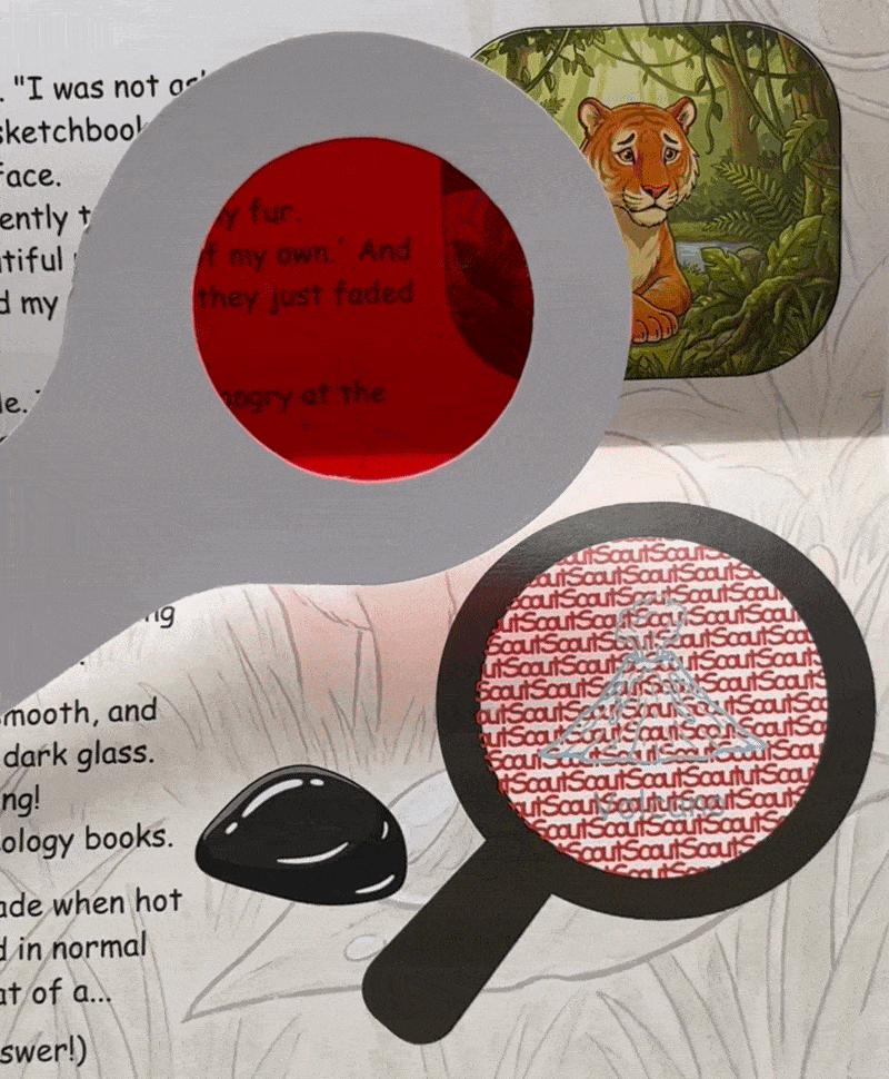Over the course of the year, Scout takes your child through multiple mysteries. The first is called The Case of the Vanishing Patterns — animals around the world are mysteriously losing their colors and patterns, and Scout needs your child's help to investigate clues and uncover the truth.