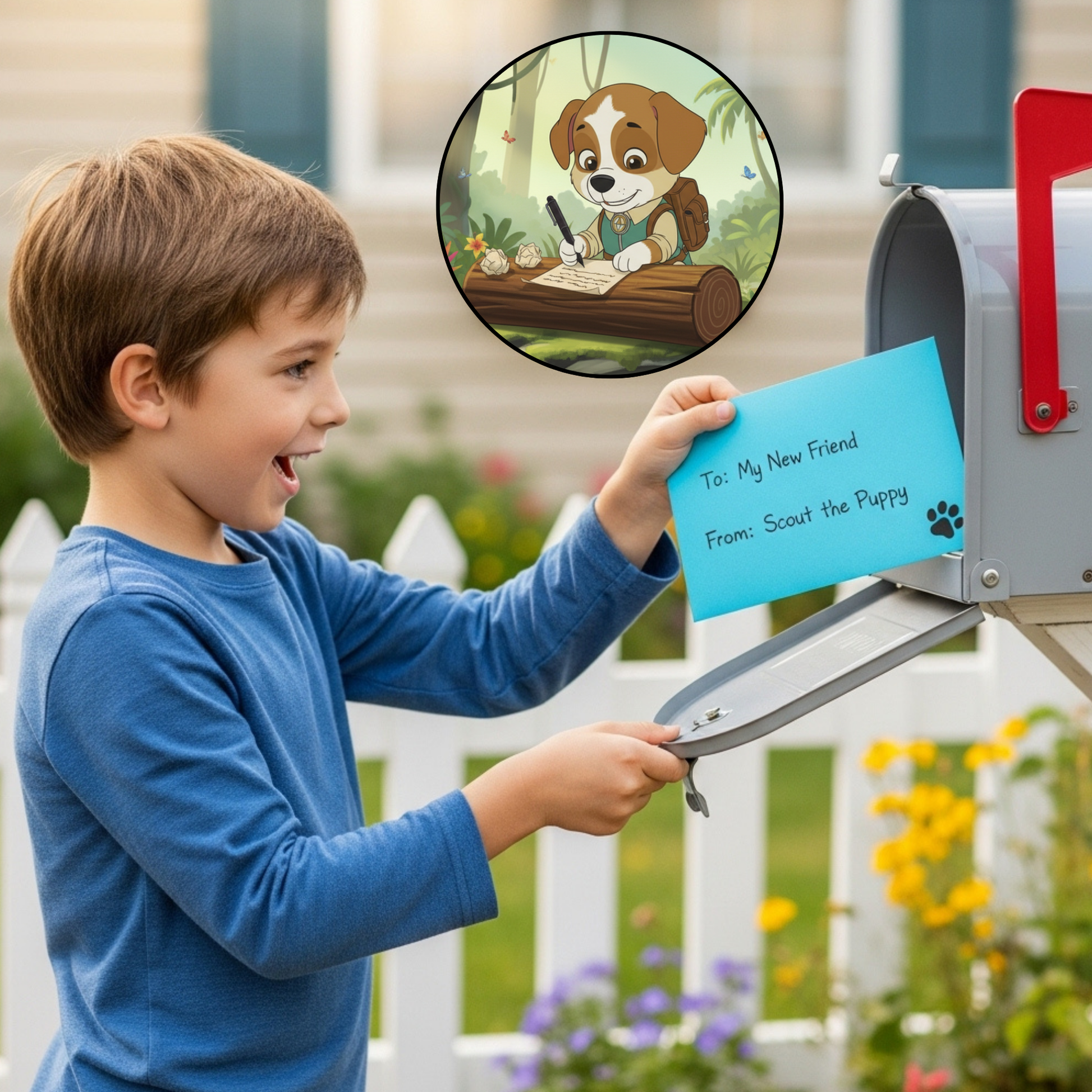 Your child receives 2 real letters per month from Scout the Puppy Detective — 24 letters total over 12 months.